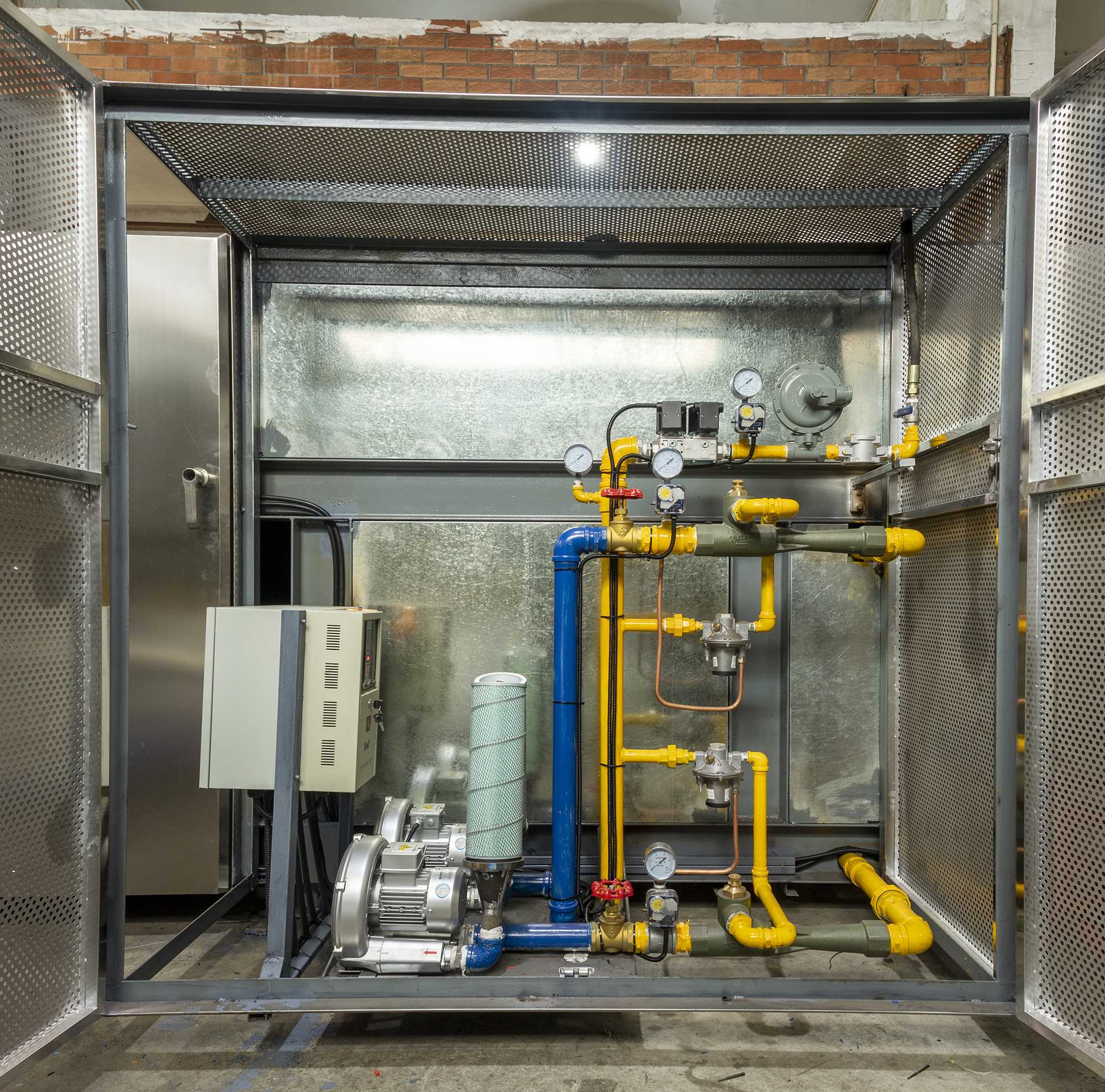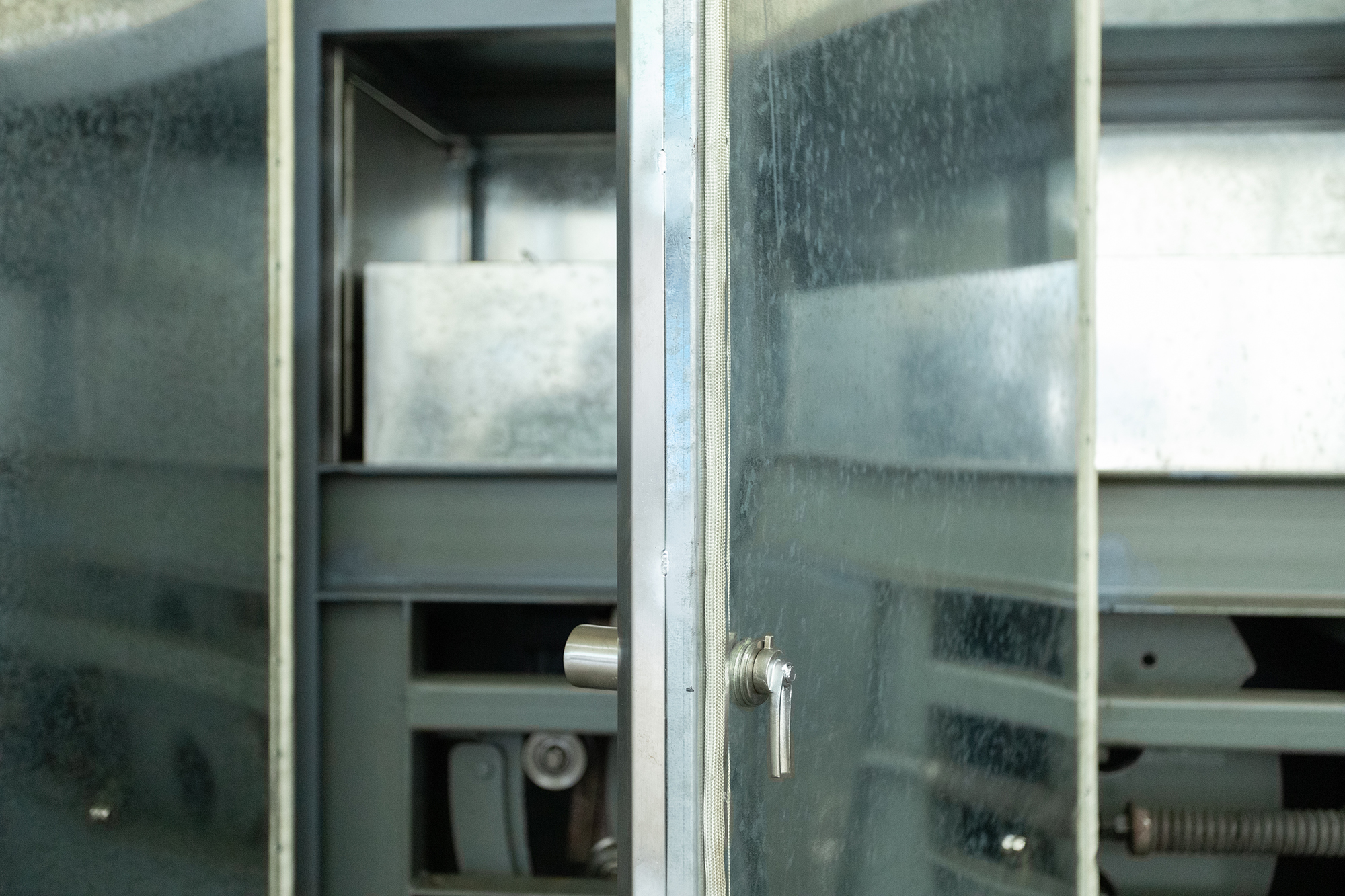 内胆为锌板,保温门为锌板夹矿物棉,外版为不锈钢制造,使用空气隔热对流式保温,可减低生产场地的温度及达到调节的效果。