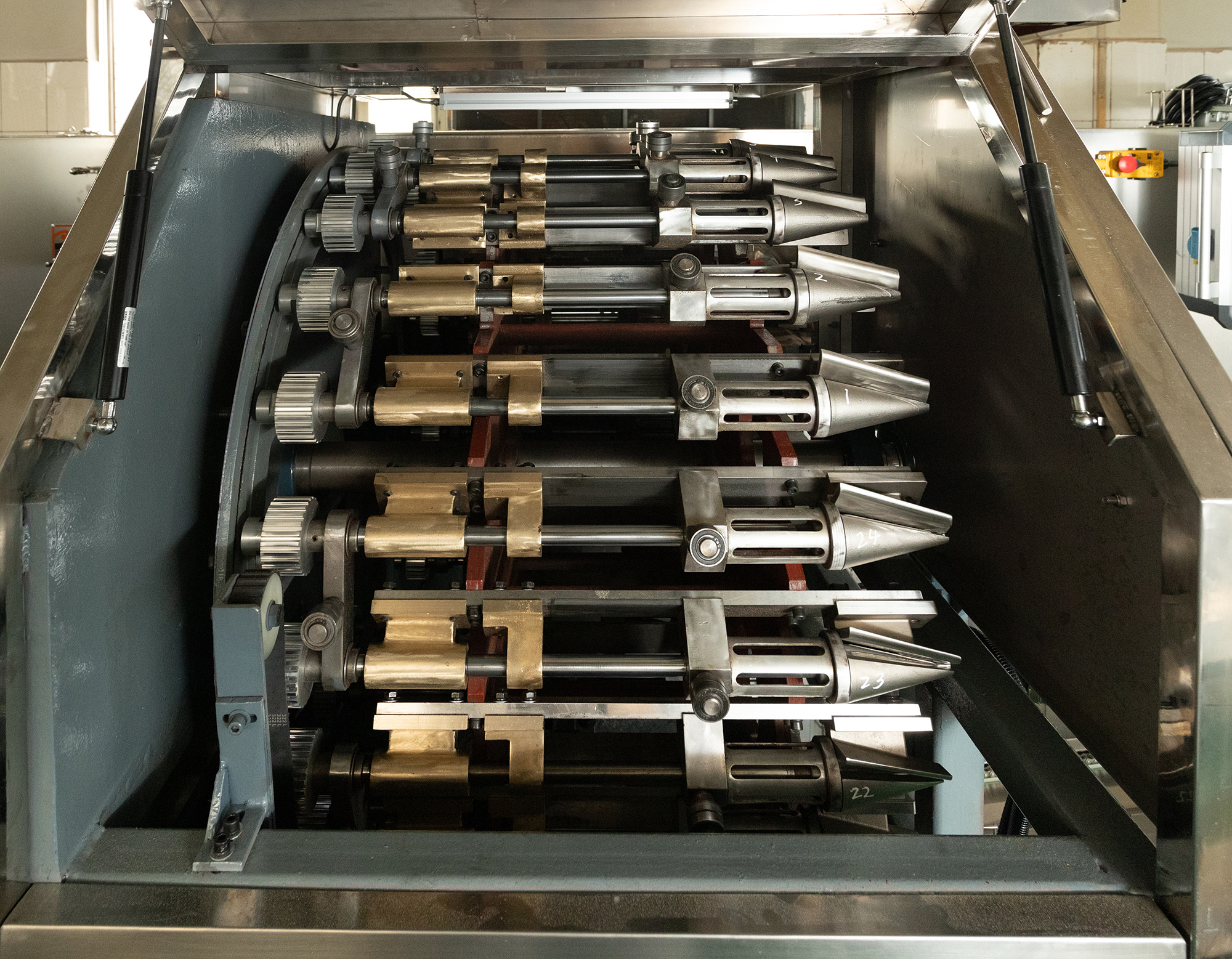 ZL200820189568.2)易使用和维修,通过弹簧可使 产品灵活排出,不管是平口甜筒还是自然边甜筒